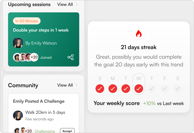 We designed a lightweight, intuitive interface centered around daily logging, visual progress indicators, and subtle habit-building nudges. Key UX components included customizable health tracking tiles, friendly wellness insights, and gamified habit streaks. The visual language was kept soft and approachable to reduce friction, while UX decisions focused on repeat use and user trust.